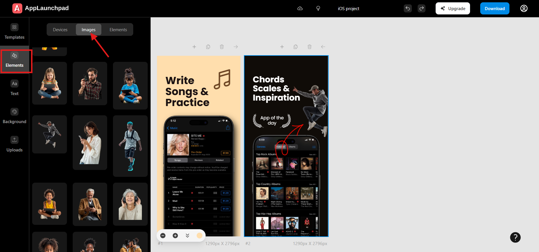 4. Now choose any image element from the list, and it will get added to the screenshot.